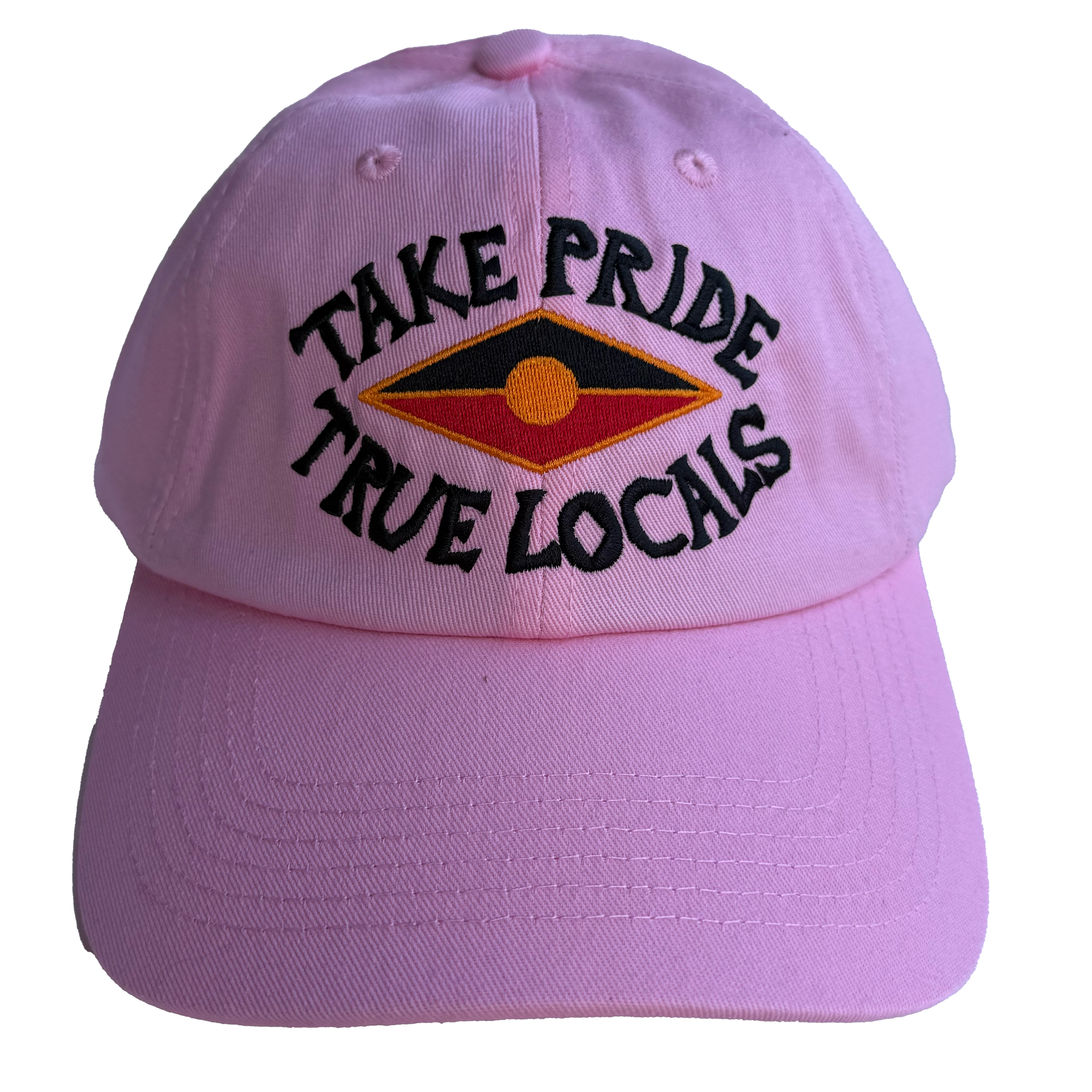 A classic dad cap with a bold message. The True Locals cap features a sleek pink design with "Take Pride, True Locals" embroidery, making a strong statement wherever you go. Built for comfort and versatility, it’s finished with a leather back strap and brass clamp for a premium touch.